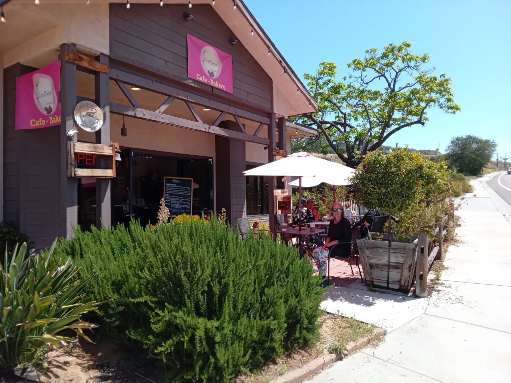 A relaxing rest day today before the final push (not literally hopefully, as we are expecting a huge downhill!) to the coast. We didn’t do very much apart from eat lots of food from the local grocery store – fully justified as we had lots of calories to replace. Pine Valley is a very pretty little town, surrounded by green hills and trees which are still something of a novelty to us. We popped out for a little explore and a coffee at Major’s Diner, but that was about as energetic as it got!