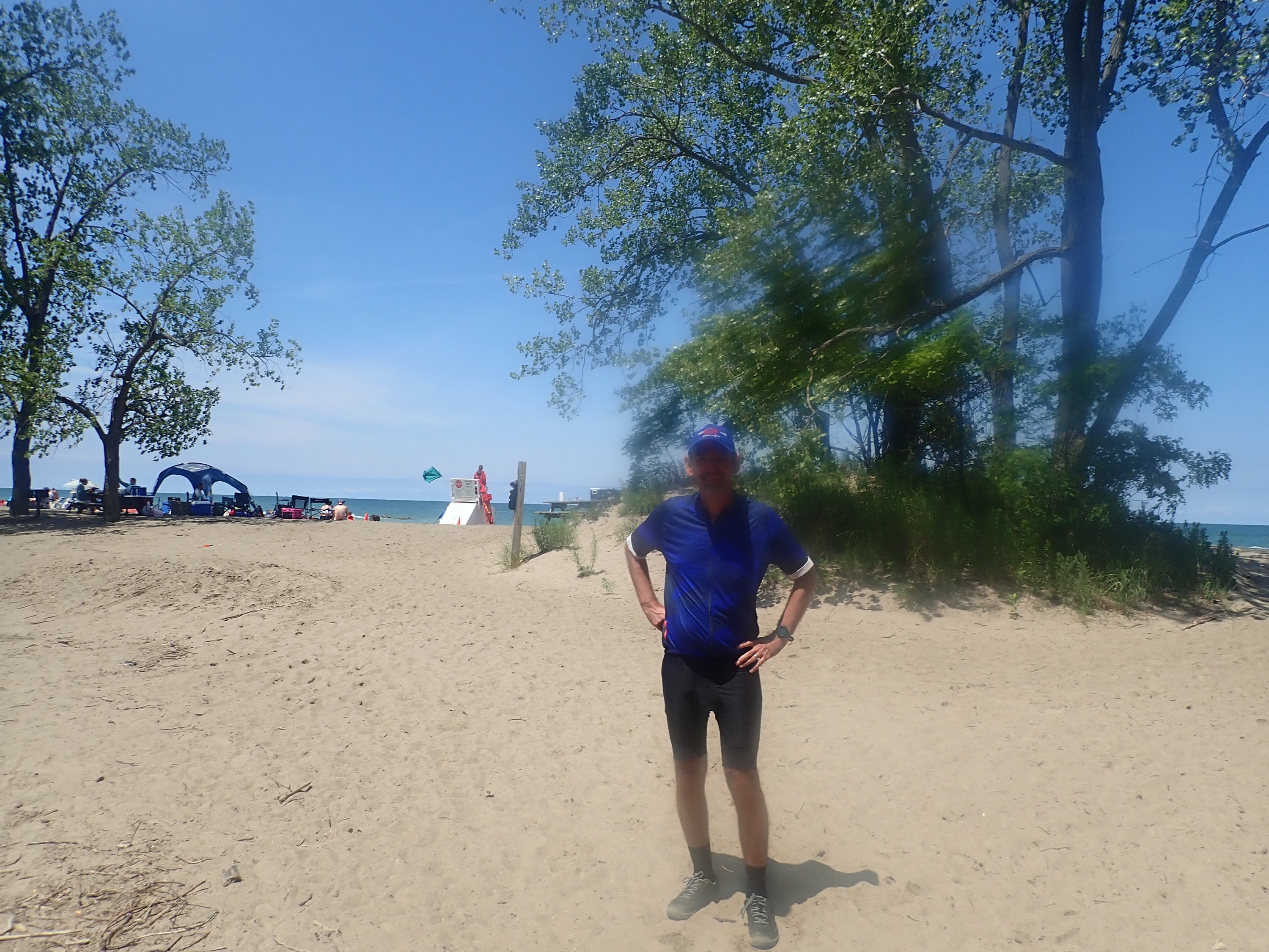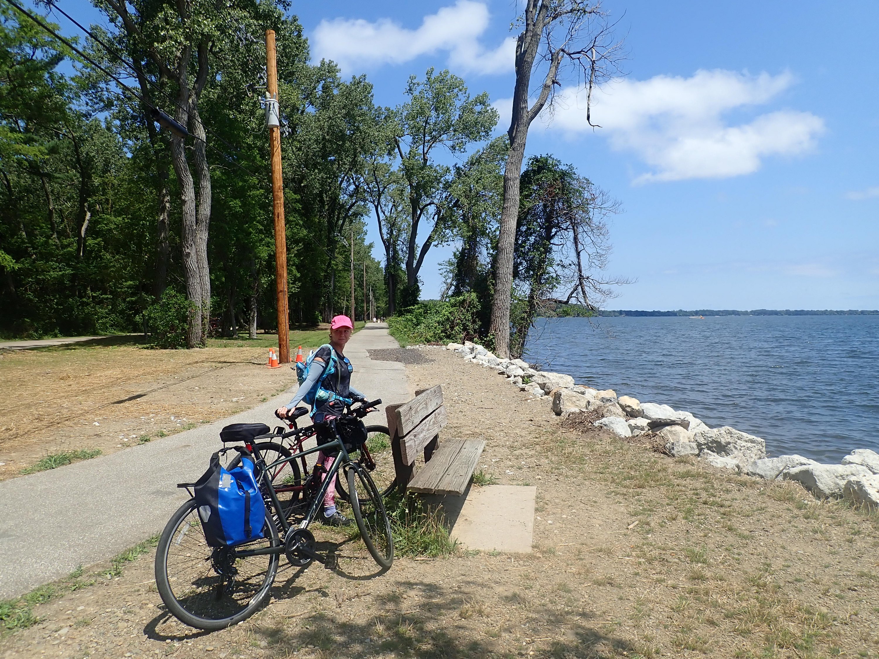 Since it seemed a little early in the trip for a proper rest day, we took the time to do a 20km circuit around the beautiful Presque Isle State Park next to the campsite as well as eating more of Sara’s burgers and hot dogs. And today the weather was glorious!