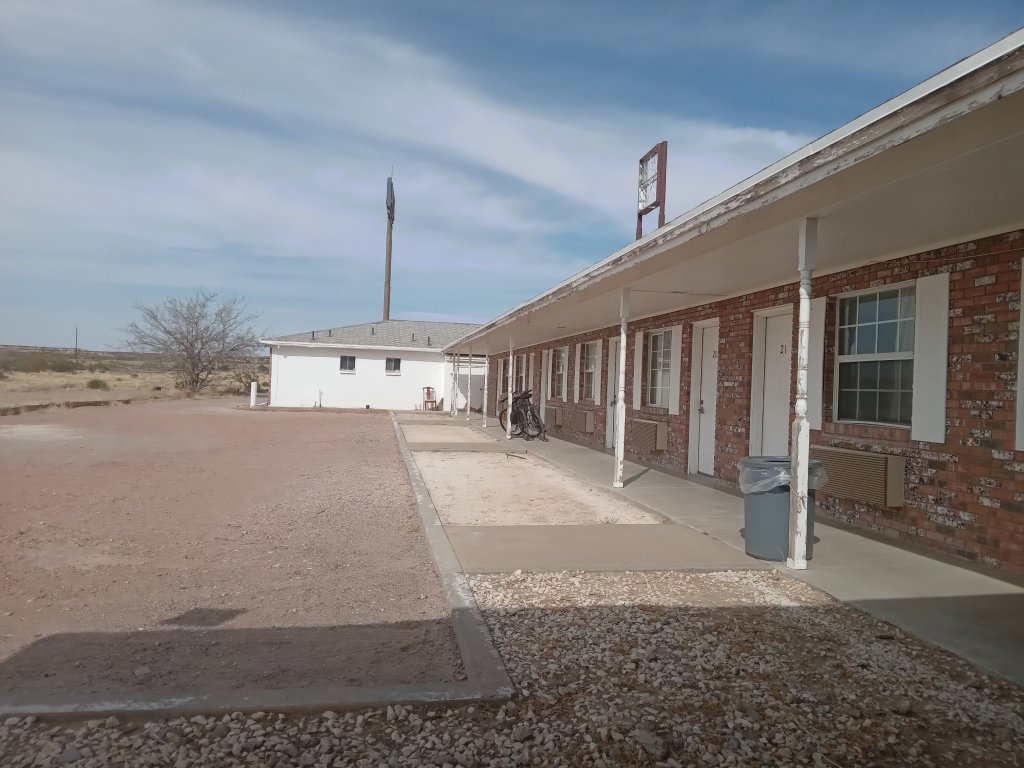 Our first 30km today was again along Interstate 10 – most of it along a traffic free service road at the side – which turned out to be almost entirely downhill making for fast progress. The service road eventually died out 3km short of our exit, by which time we were on the “wrong side” of the interstate leaving us cycling down the shoulder towards oncoming traffic – this is technically no more dangerous than riding with the traffic I suppose, but more terrifying when you can see the trucks coming towards you! Leaving the interstate at last, we cycled some very quiet backroads, through a couple of tiny “towns” that looked like they once had stores, cafes and gas stations before the interstate took all of the passing trade away. The road continued with the Rio Grande ( and the Mexico border) just a kilometre or so away on our left hand side. It is so close to Mexico that my GPS keeps adjusting to Mexican time and my mobile phone company has messaged me to say that they are charging me Mexican roaming rates rather than the US rates that are included in my plan – thanks for that Three, great job. The landscape became much greener than we have seen for a long time with irrigation channels from the river being used to actually grow stuff. It was the hottest day that we have had so far with the afternoon temperature reaching 32C, making the last 10km into Fort Hancock hard work. We both remembered “Fort Hancock, Texas” as being the place that Morgan Freeman’s character buys a bus ticket to when he finally gets parole at the end of The Shawshank Redemption to cross the border into Mexico – I’m pretty sure that no buses come here now, it is pretty much a motel, gas station and Family Dollar store just off I10 – but it is our home for the night in a cheap motel!