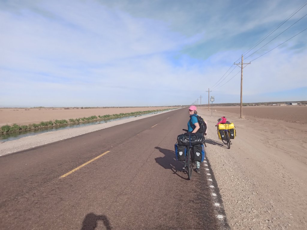 Today’s ride was not much fun – getting past a big city never is. We continued West along what yesterday was a fairly quiet, narrow road. Today during morning rush hour it was transformed! Cycling along a very narrow shoulder with busy traffic for 15km was not fun – some traffic got much too close and for some reason school buses were the worst – it felt like they were trying to hit us. We then joined the 375 loop which is basically El Paso’s ring road and supposedly a quick easy way around the city. Mostly it was just terrifying, especially where it has a horrendous looking intersection with I10. It does supposedly have a cycle lane, but putting up the odd sign at the side of the road saying “bike route” and spray painting the occasional picture of a bike on the shoulder does not count as providing decent infrastructure for bikes in my mind! Half way around, the wind increased as well, reaching near gale force by early afternoon – heavy traffic and wobbling in a crosswind is not a good combination! We were relieved to arrive at our motel for then night and decided to take an extra rest day here with more strong winds forecast for tomorrow.