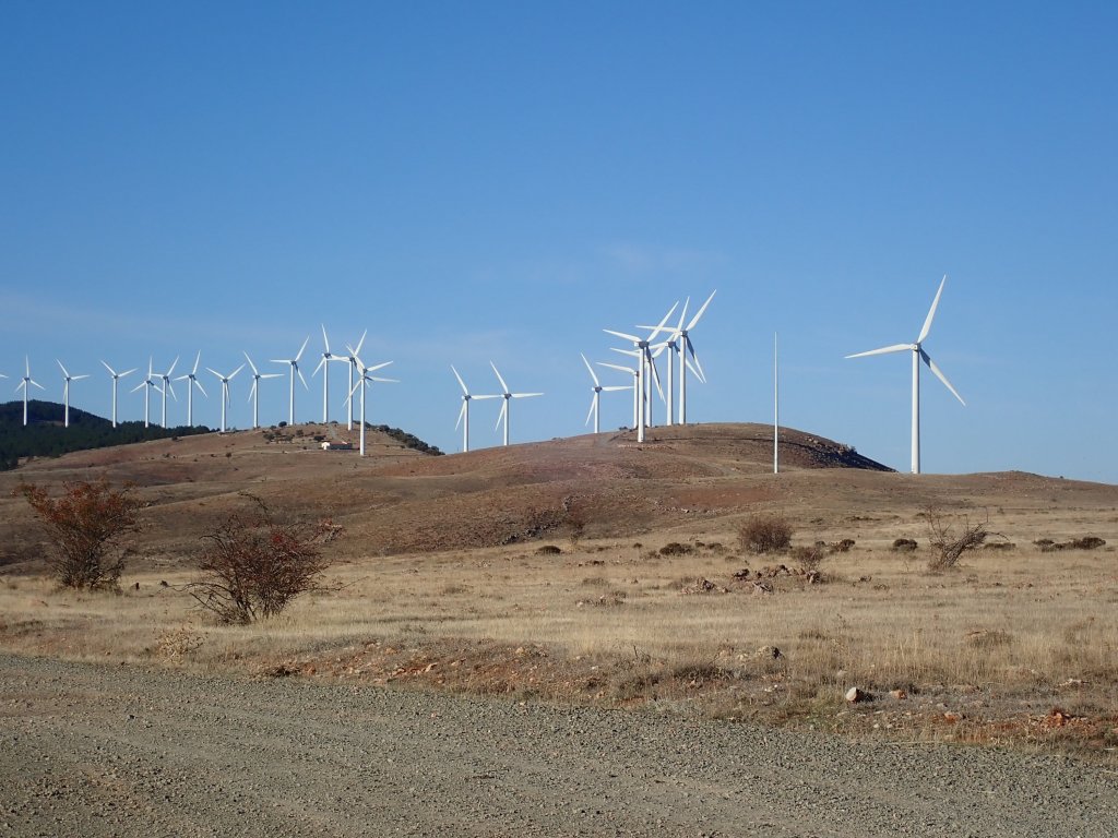 We left Burgos and stumbled onto a cycle path sign posted “Vias Verdes Santander Meditarraneo” with lots of information signs, kilometre markers and a wonderful smooth tarmac surface which gave us some lovely cycling. Could this be a cycle path all the way to the Med? Was our trip across spain about to become a lot easier than we expected? After a few km, the tarmac abruptly ended and the surface became pretty much unrideable. Somewhat dissapointed we struggled up an even worse track and back onto a road – maybe this route needs a little more work before it is complete! The back roads that we cycled were fantastic though, through pretty scenery and small villages on another fine sunny day. We caught sight of the Vias Verde running parallel to us a couple of times and looking at the surface were glad that we had chosen the roads. Towards the end of the day we stopped to check out some “dinosaur footprints” in the limestone rock but were more entertained taking photos next to the giant dinosaur model that had been built next to them! We joined the busier N234 for a few km before turning off into the village of Hortiguela and finding our hostal for the night. It was a nice room above a small restaurant, but with another owner who thinks that radiators are for decoration, so our newly acquired heater was soon pressed into service on a cold night in the mountains.